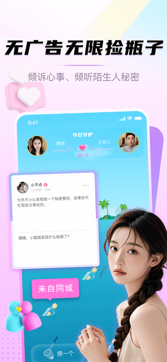 星梦漂流瓶 är en social nätverksapp för iPhone som låter användare skicka och ta emot meddelanden i virtuella flaskor. Användare kan skriva ner sina tankar, önskningar eller hemligheter och släppa dem i havet av digitala flaskor, vilket skapar en plattform för oväntade möten och konversationer. Varje flaskfynd ger en chans till en ny och värdefull dialog, vilket gör appen till en unik upplevelse av social interaktion.